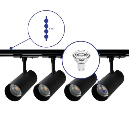 | Fabrikantnaam | Complete Straight 1-meter 1-Phase Track Set Black incl. 4x Spot fixture + GU10 2700K 3W Dim - 1 Mete | |