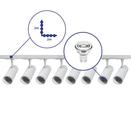 | Fabrikantnaam | Complete L shaped 1-Phase Track Set White incl. 8x Spot fixture + GU10 2700K 3W Dim – 2 x 2 meters i | |