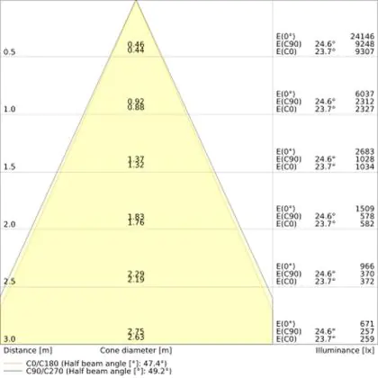 De gradenbundel geeft informatie over hoe breed het licht wordt uitgestraald. Dit zit tussen de 0 en 360 graden (D). Hoe kleiner de hoek, hoe specifieker de lichtbundel is. Over het algemeen is een smalle gradenbundel perfect voor sfeer- of accentverlichting, terwijl een brede gradenbundel ideaal is om grote oppervlaktes te verlichten.