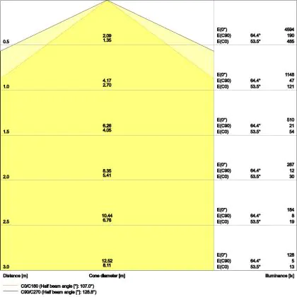 ![]() De kleurcode is een combinatie van de kleurweergave (CRI) en lichtkleur (Kelvin). Het eerste getal is de kleurweergave (1 = zeer slechte kleurweergave, 9 = maximale kleurechtheid). Het tweede en derde cijfer betreft de lichtkleur. Een lamp met kleurcode 830 heeft bijvoorbeeld een goede kleurweergave en straalt een warm wit licht uit (3000K), waar een lamp met de kleurcode 940 een uitstekende CRI heeft en een koel wit licht (4000K) uitstraalt. |