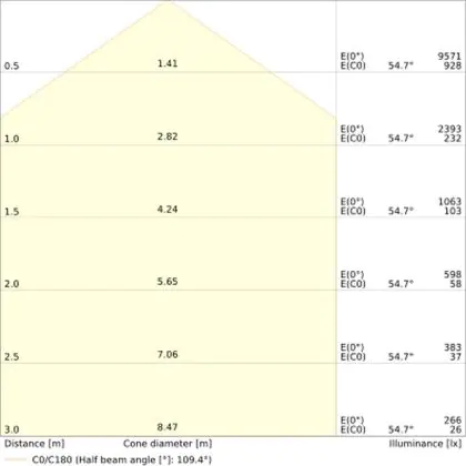 De lichtopbrengst (Lumen), geeft weer hoe krachtig het uitgestraalde licht is. Dit is belangrijk om te weten om de juiste sfeer te creëren. 0 tot 400 Lumen is bij uitstek geschikt voor accent- of sfeerverlichting. Een hoger aantal Lumen is, afhankelijk van de grootte van de ruimte, beter geschikt als ondersteunende- of basisverlichting. Heb je plafonds hoger dan 4 meter, dan is een lichtopbrengst van minimaal 8000lm aan te raden indien heldere verliching gewenst is (vb. in werkomgevingen).