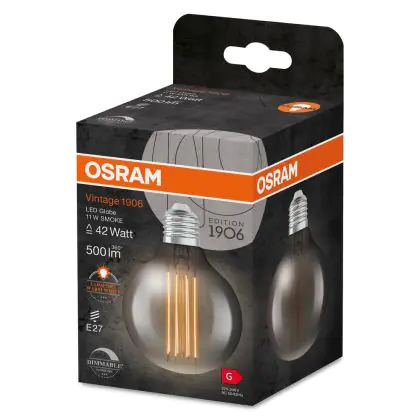 Ledvance Vintage 1906 LED E27 Globe Smoke 11W 500lm - 818 Zeer Warm Wit | Dimbaar - Vervangt 42W